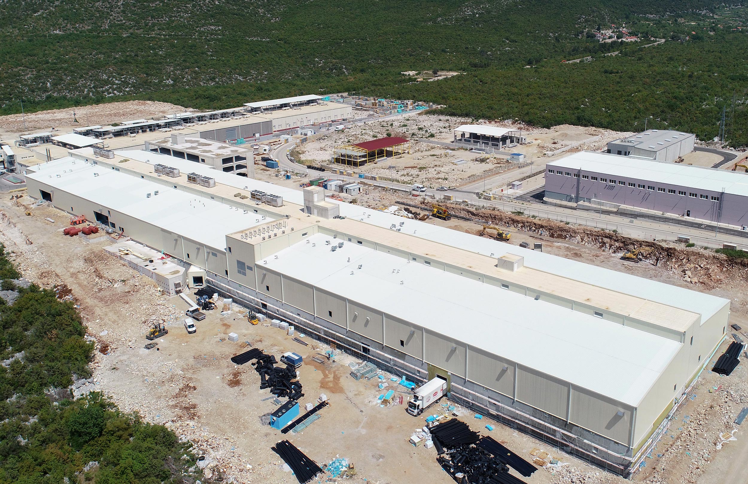 Objekt sastoji se od proizvodne hale i upravne zgrade koja se naslanja na proizvodnu halu, stvarajući integriranu radnu okolinu. Proizvodna hala, duljine 255 metara, širine 55 metara i visine 17 metara, podijeljena je na tri dijela. Dijelovi A i B uključuju podrumsku, prizemnu i tehničku etažu, dok dio C sadrži samo prizemnu i tehničku etažu. Upravna zgrada, duljine 50 metara i širine 20 metara, oblikuje dio D i ima tri etaže za učinkovito upravljanje poslovanjem. Osnovna konstrukcija objekta temelji se na armirano-betonskoj montažnoj strukturi s osnovnim rasterom od 11x10 metara. Struktura uključuje temelje, montažne stupove visine do 17 metara, međukatne L i OT grede, međukatne TT ploče te krovne T glavne i sekundarne nosače. Objekt je ukrućen s četiri centralne jezgre sa stubištima i teretnim liftovima, kao i podrumskim zidovima. Ovaj kompleks predstavlja izvanrednu infrastrukturu za učinkovito i moderno poslovanje.