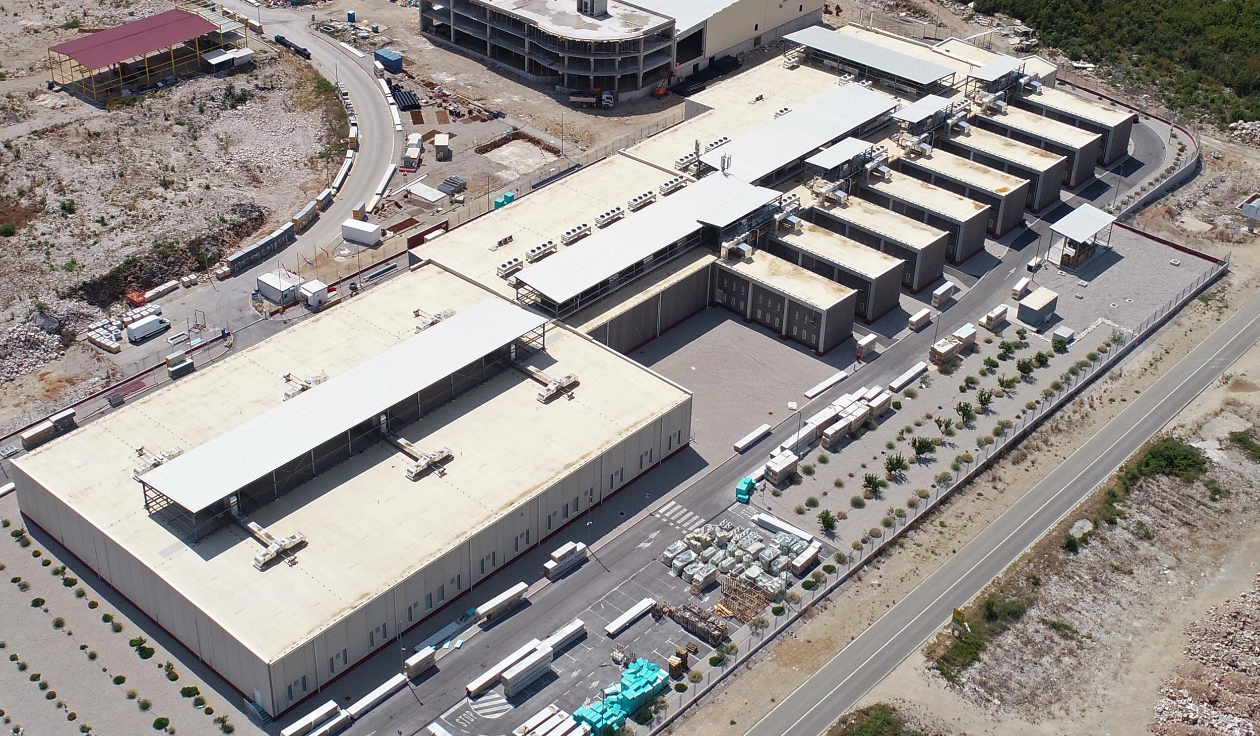Rasponi krovne konstrukcije izvedeni klasično armiranim predgotovljenim TT pločama radi značajne težine ovjesa za transport mesnih proizvoda. Fasada u cijelosti izvedena fasadnim armirano-betonskim predgotovljenim panelima.